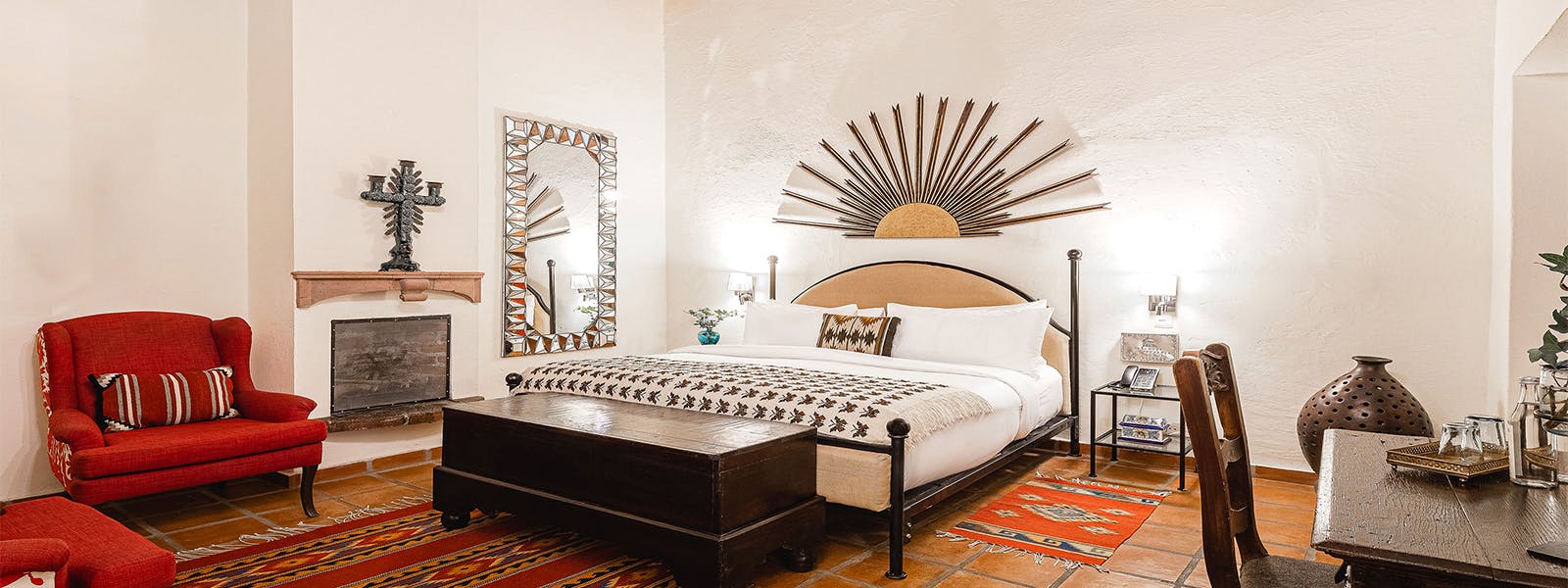 Nuestras suites son un espacio que invita a vivir las tradiciones, la cultura y la magia de nuestro México, decoradas con alebrijes, espejos artesanales, esculturas de barro, y otros elementos tradicionales que crean un ambiente acogedor y único. Imagina relajarte en una tina de baño después de un día explorando …